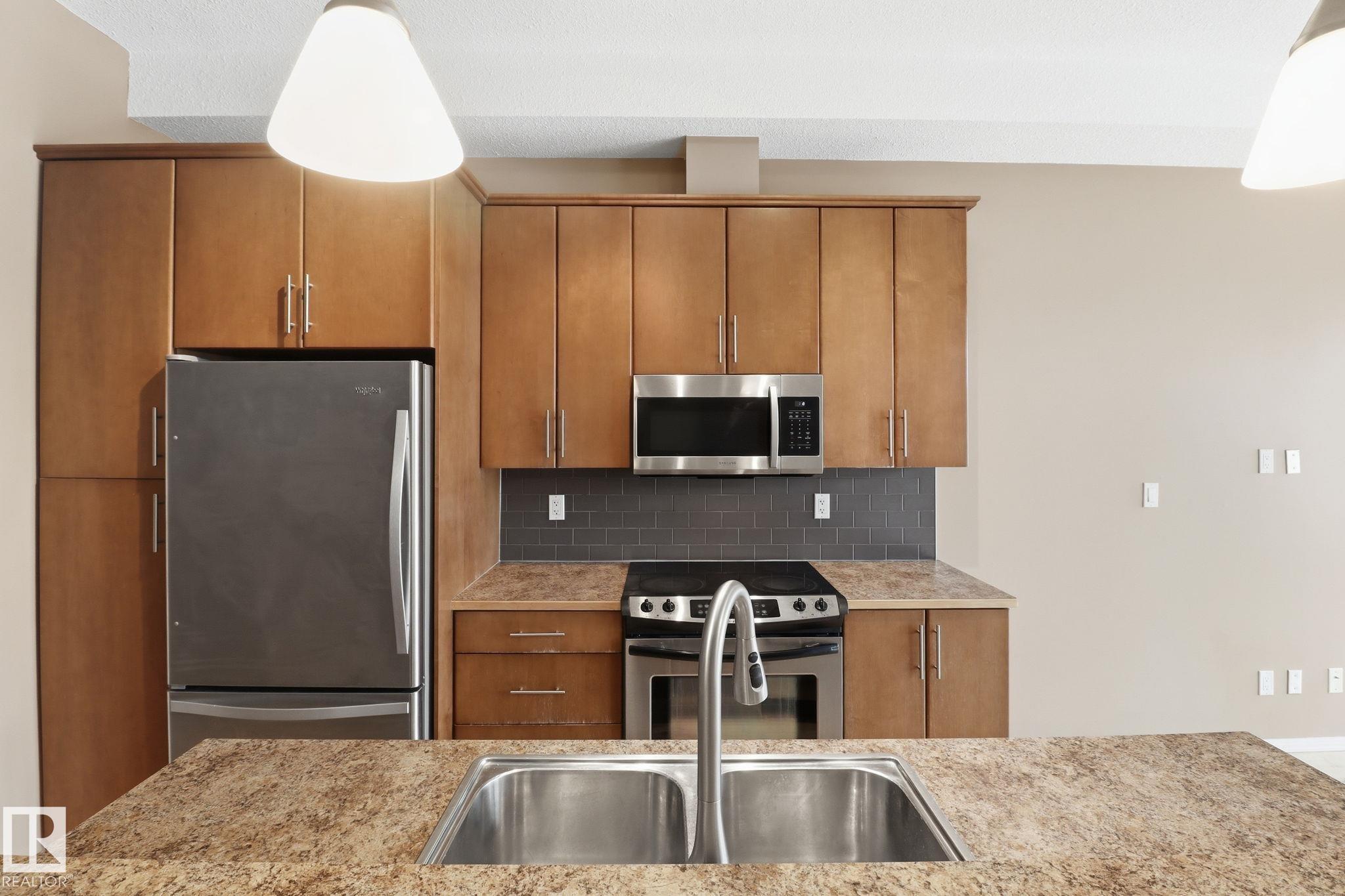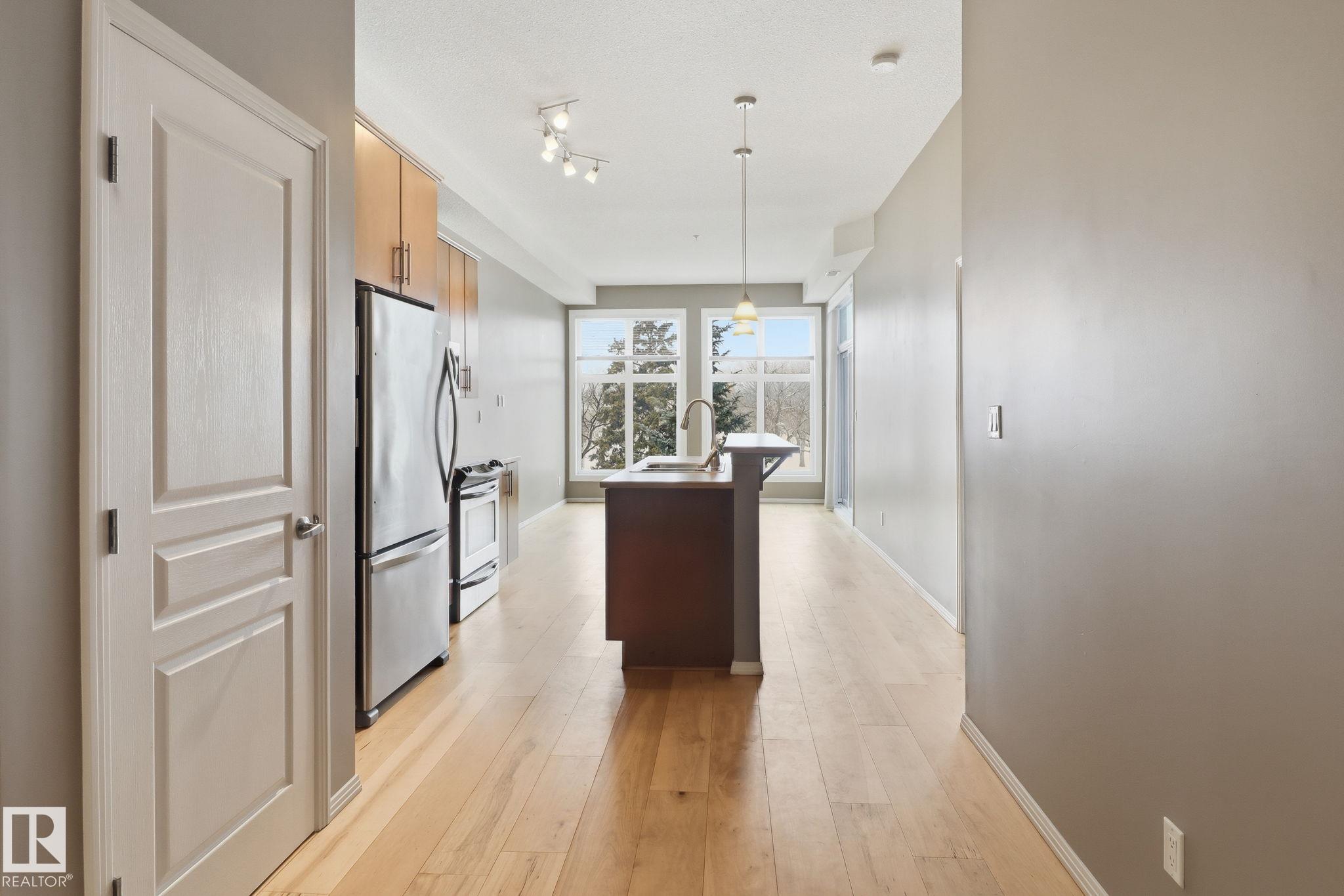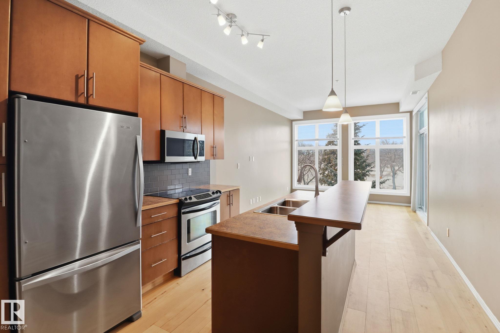 This 1,097 sq ft, 2-bedroom, 2-bath condo is on the 3rd floor of a modern development in a quiet, walkable neighbourhood. Featuring an Art Deco-inspired design with an open-concept layout and 10’ ceilings, the unit boasts new maple hardwood flooring and ceramic tile in bathrooms. The kitchen is equipped with solid maple cabinets, subway tile backsplash, and upgraded stainless steel appliances. The primary suite offers a generous walk-in closet and an ensuite with a deep soaker tub. In-suite front-loading wa...