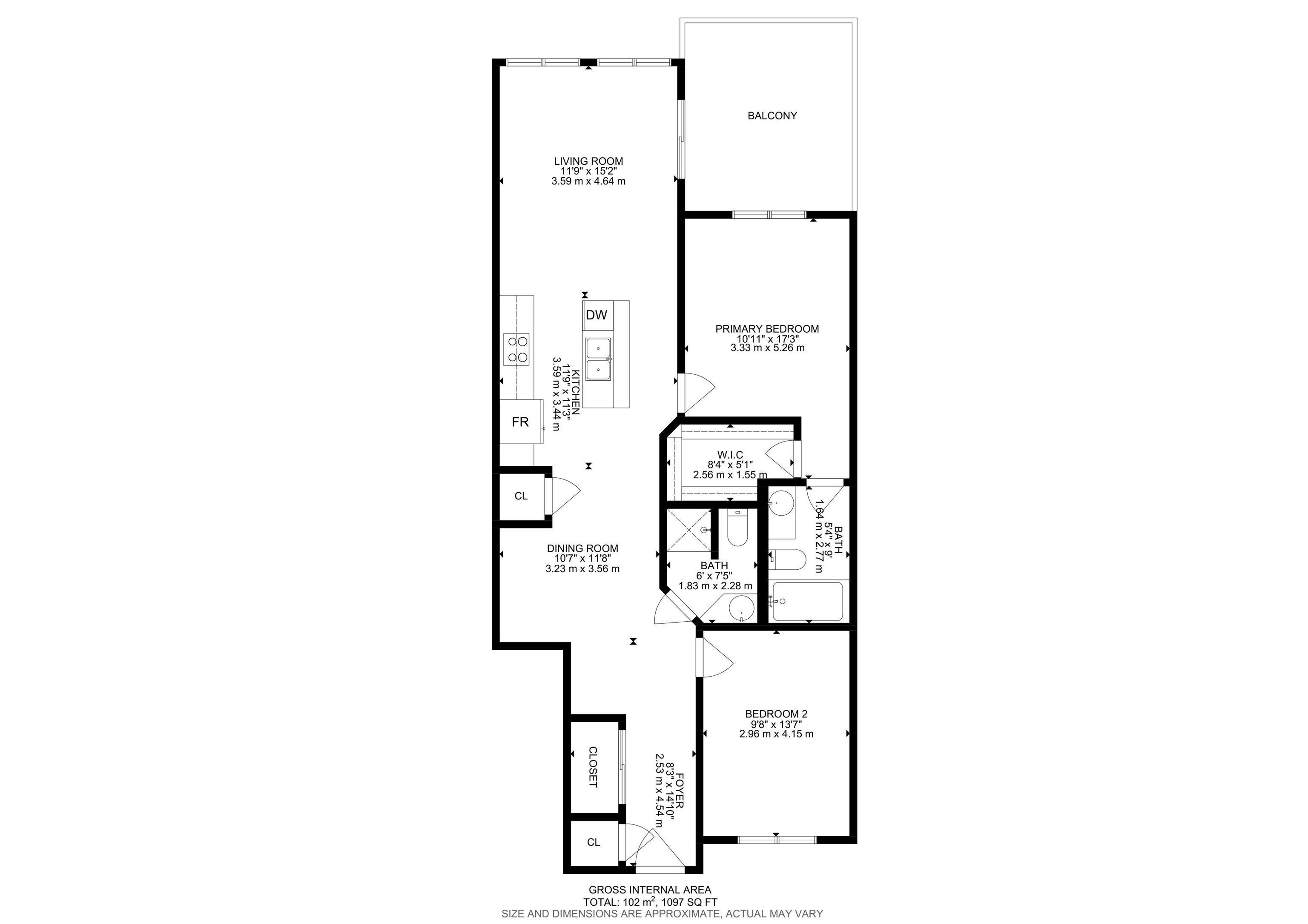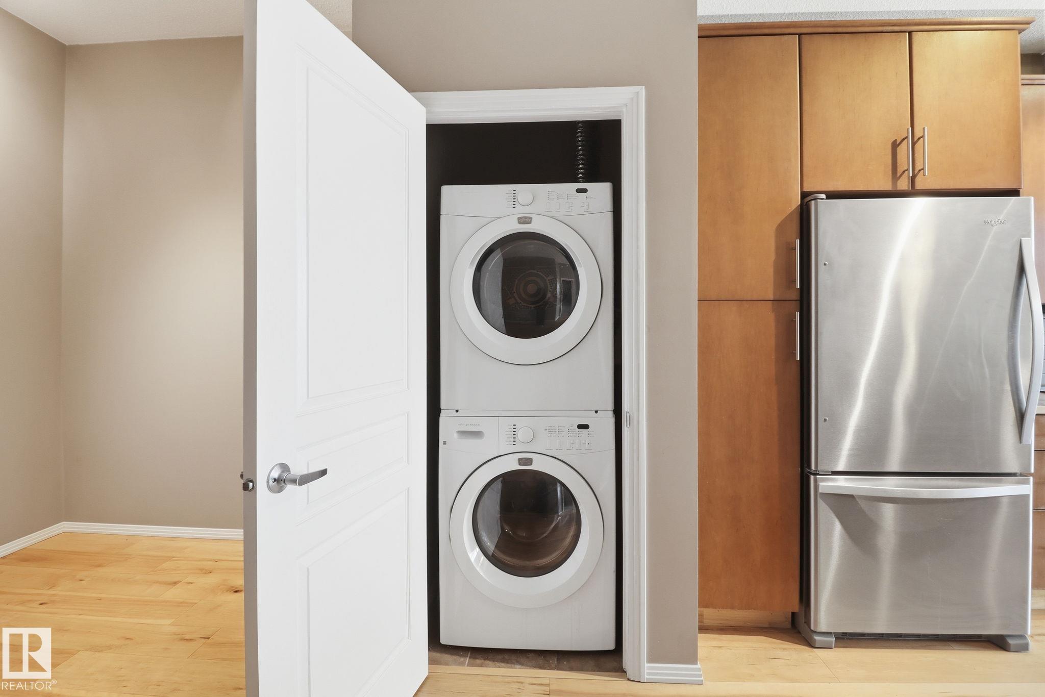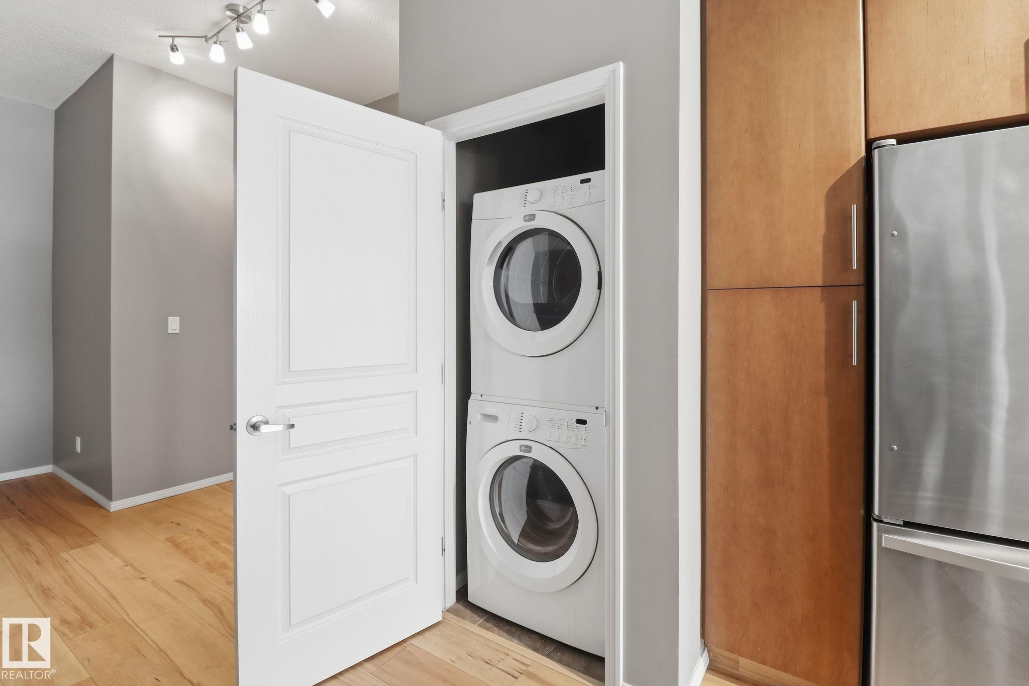 This 1,097 sq ft, 2-bedroom, 2-bath condo is on the 3rd floor of a modern development in a quiet, walkable neighbourhood. Featuring an Art Deco-inspired design with an open-concept layout and 10’ ceilings, the unit boasts new maple hardwood flooring and ceramic tile in bathrooms. The kitchen is equipped with solid maple cabinets, subway tile backsplash, and upgraded stainless steel appliances. The primary suite offers a generous walk-in closet and an ensuite with a deep soaker tub. In-suite front-loading wa...