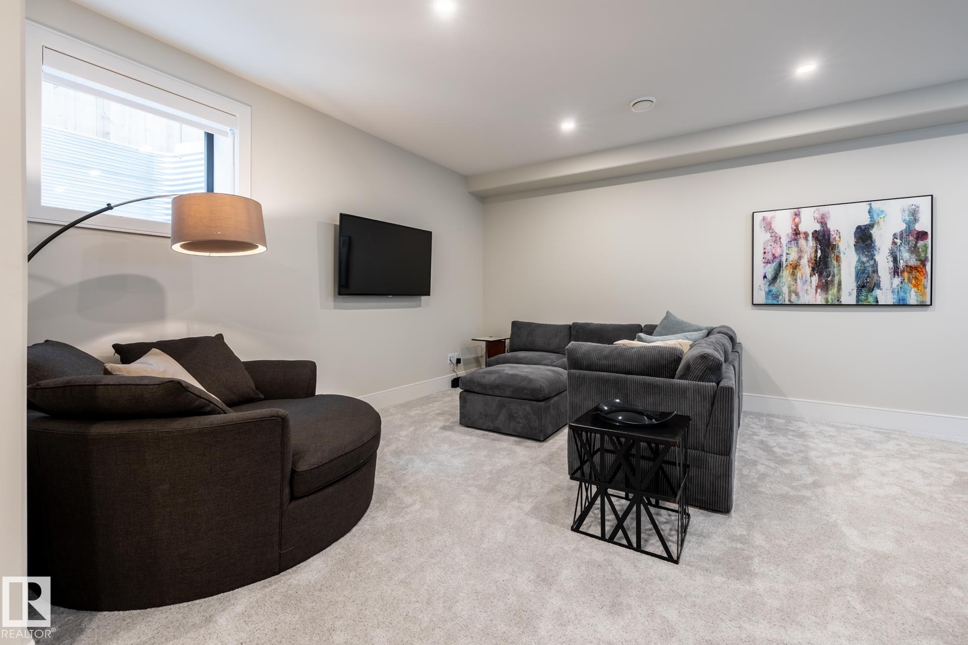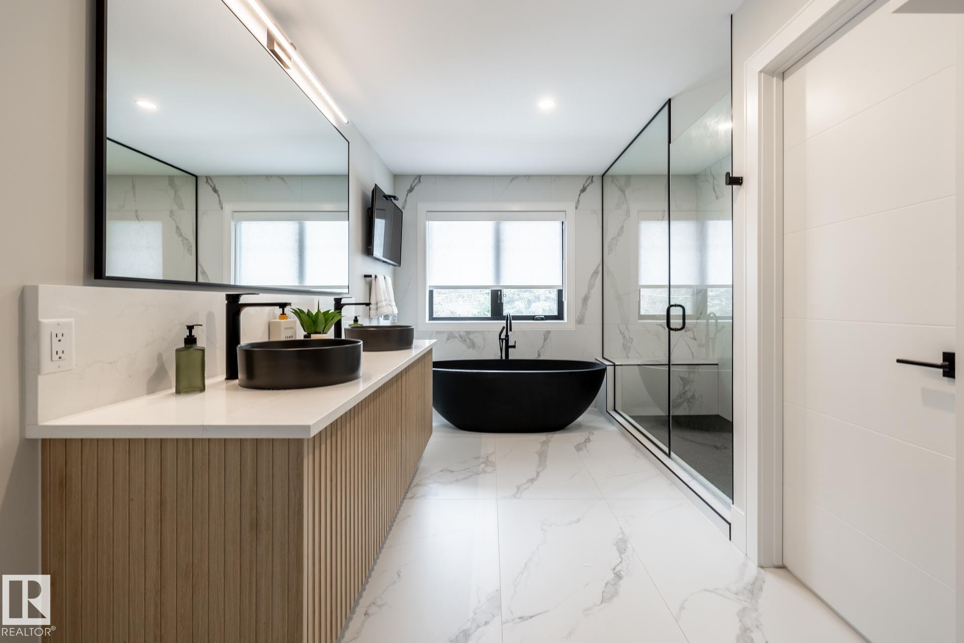 This full-width Crestwood home on a deep pie-shaped lot is set behind a green space, offering additional front parking and enhanced curb appeal. Hardie board, wood, and concrete exterior delivers a commanding presence, distinct from standard stucco infill. Inside, over 3,300 sq ft of intentionally designed living space. Curated with fluted wood doors, an open stairwell with wood treads and steel railing, and a full stone gas fireplace anchoring the main living space. The kitchen features a waterfall island,...